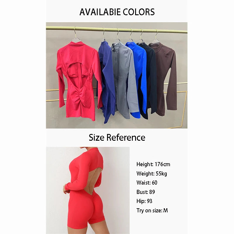Macacão Feminino de Verão com Zíper Meio, Para Academia, Para Atividades ao Ar Livre, Respirável, Com Costas em V, Roupas de Treino, Levanta Bumbum, Conjunto Esportivo Para Mulher