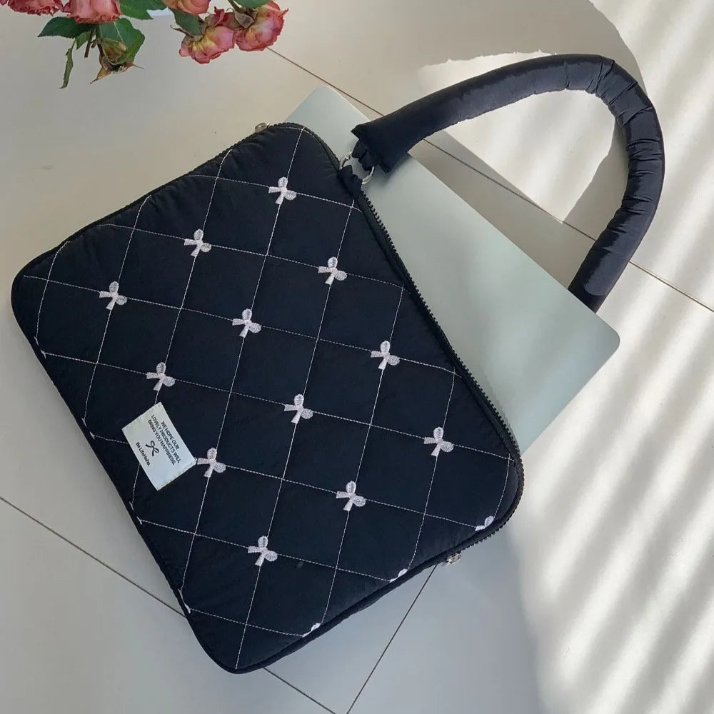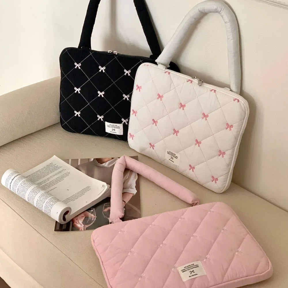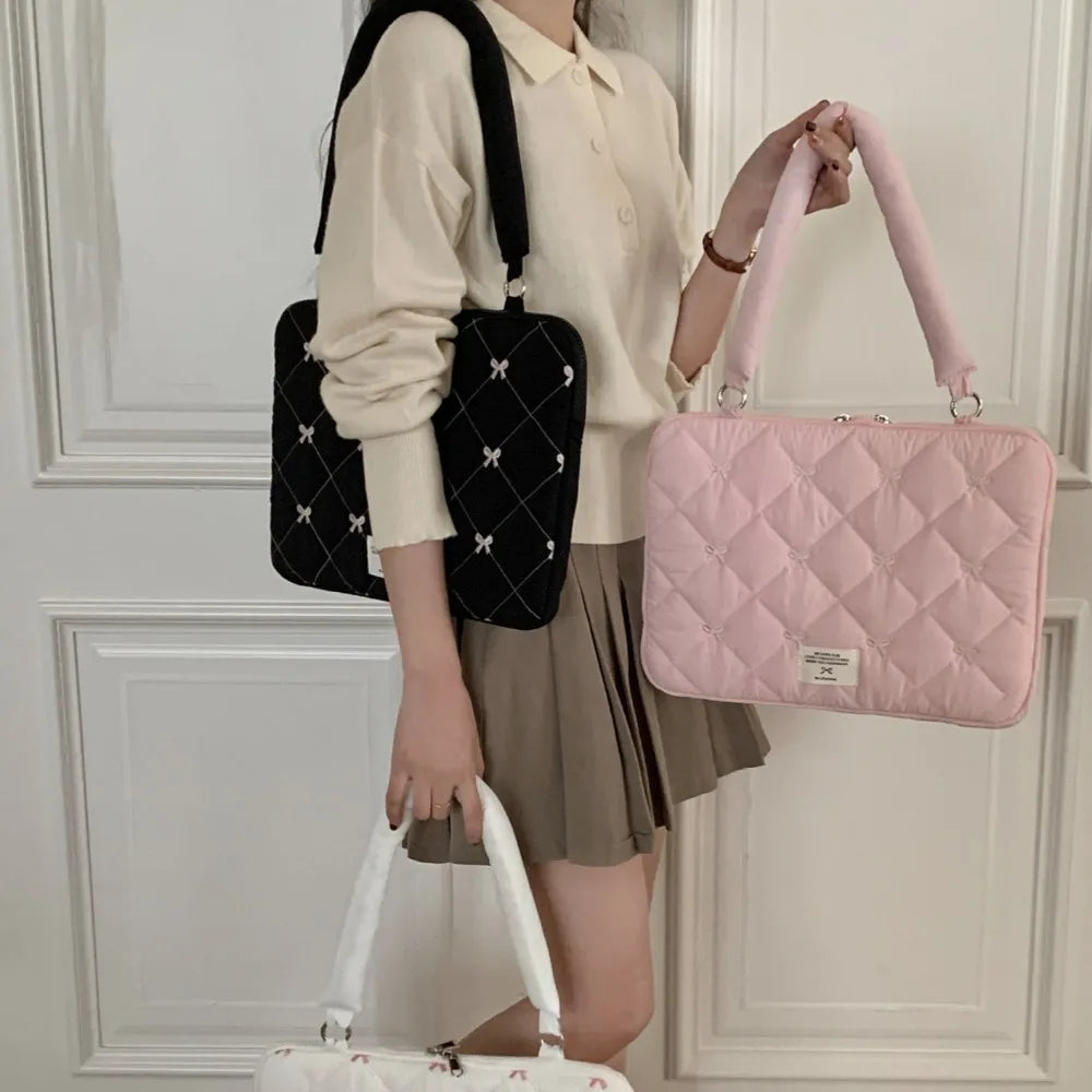 Pasta Executiva com Laço Bordado Bolsa de Arquivo Grande Capacidade Bolsa de Documento Bolsa de Mão Bolsa de Ombro Bolsa para Laptop Trabalho de Escritório