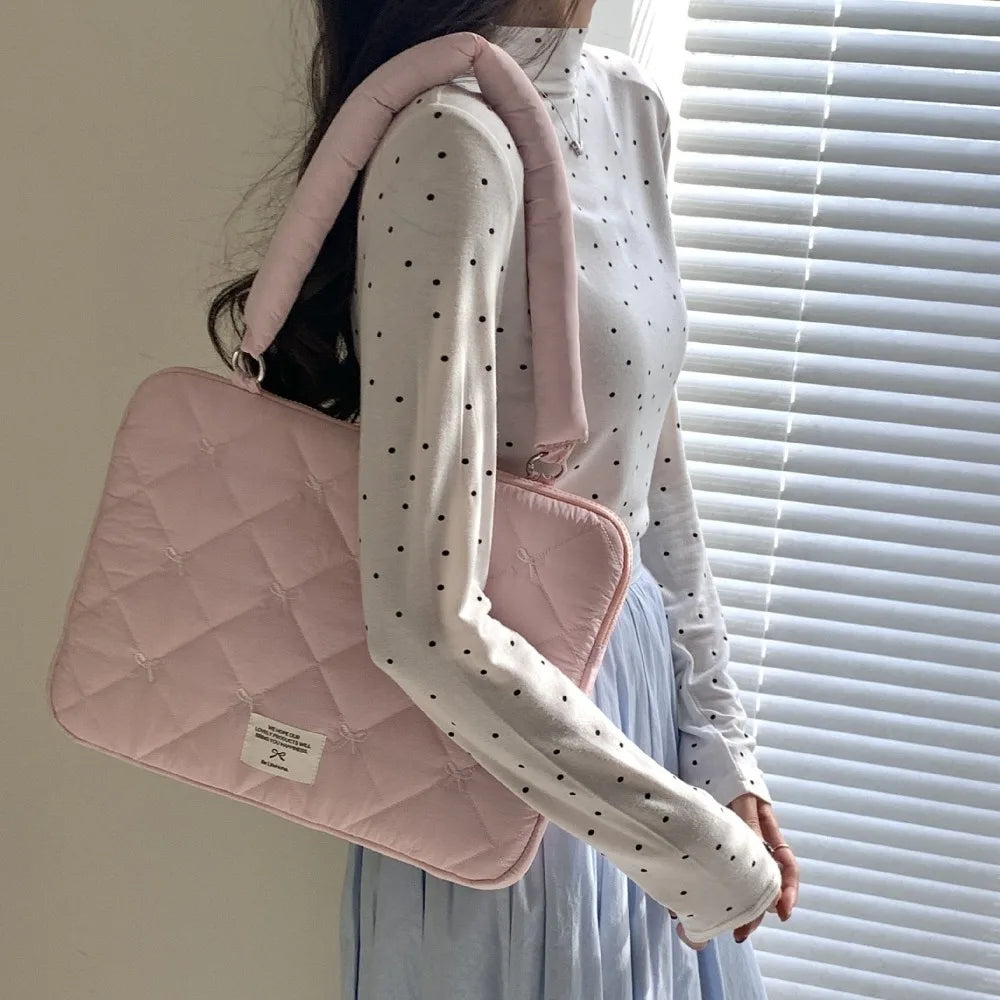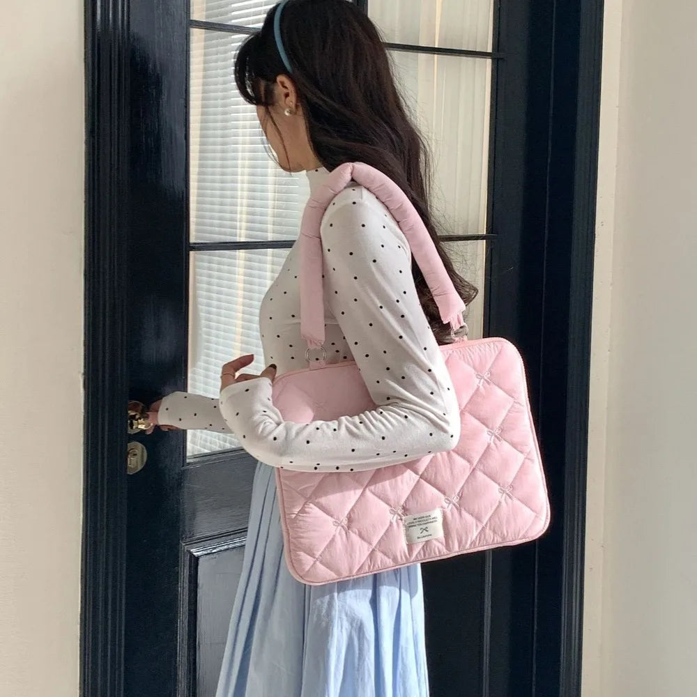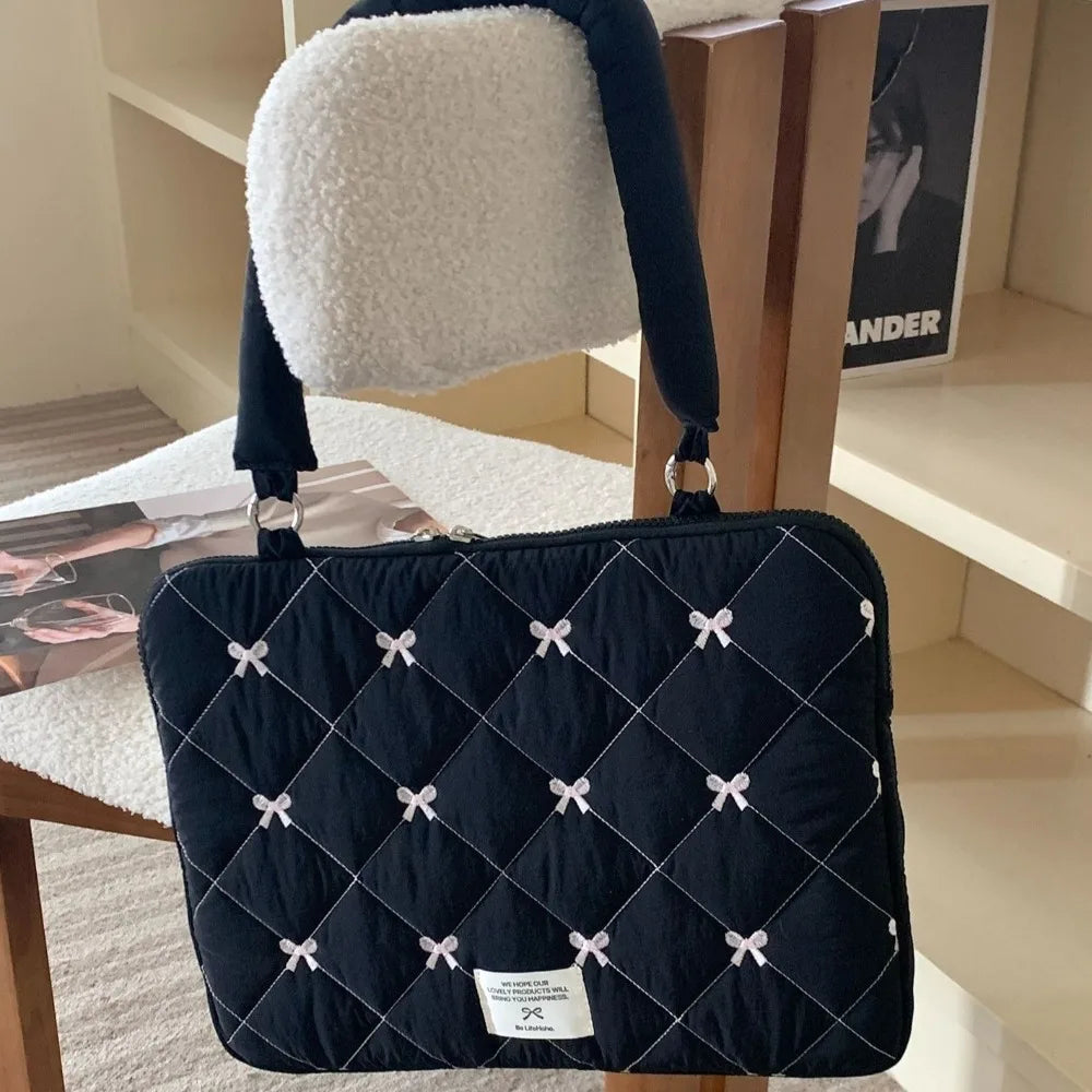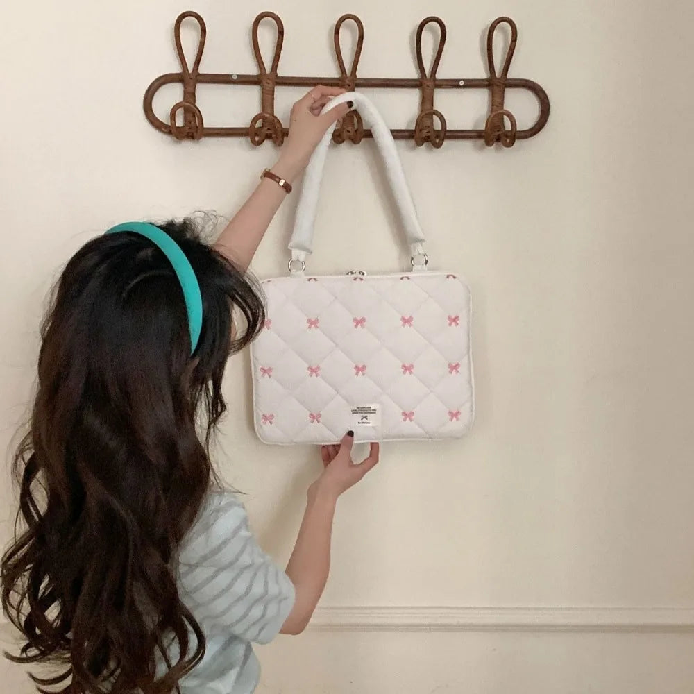 Pasta Executiva com Laço Bordado Bolsa de Arquivo Grande Capacidade Bolsa de Documento Bolsa de Mão Bolsa de Ombro Bolsa para Laptop Trabalho de Escritório