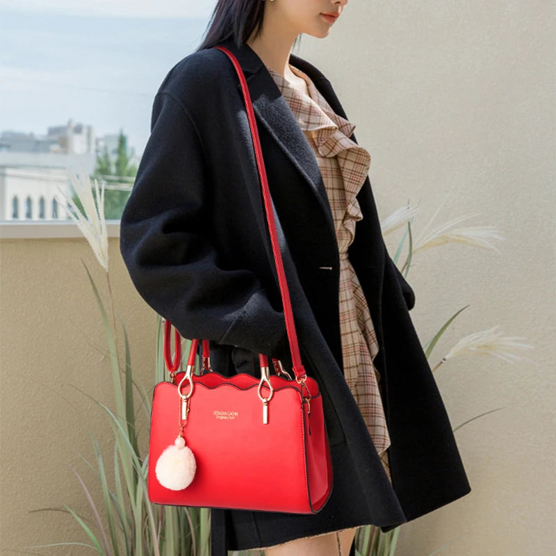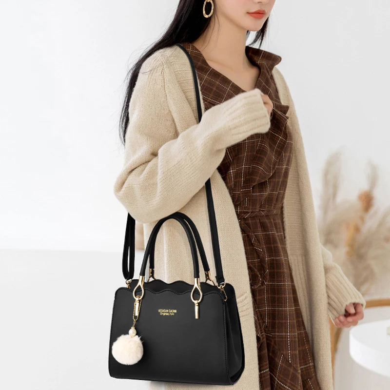 Yogodlns Bolsas Femininas Sacolas Grandes Bolsa de Ombro Quadrada de Couro PU com Pompom Transversal