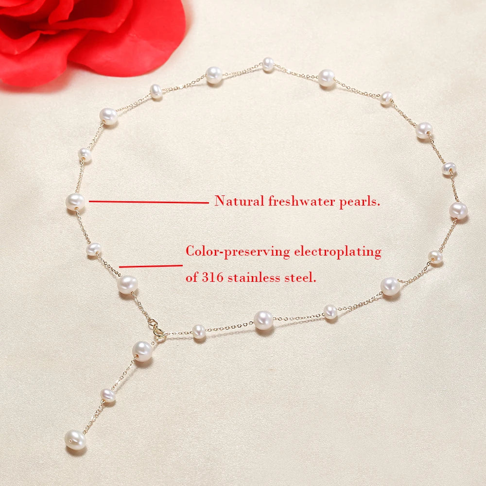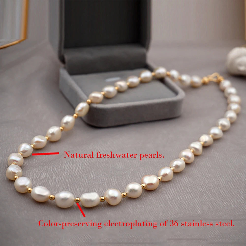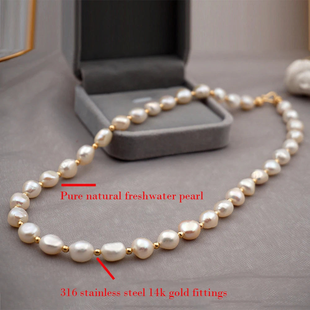 Pérolas naturais de água doce, pérolas em contas feitas de colar de joias de alta qualidade, acessórios em aço inoxidável 316.