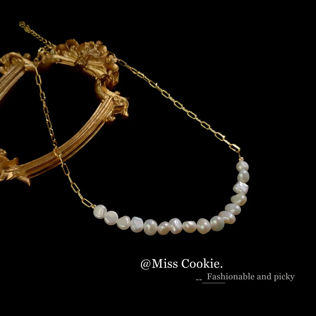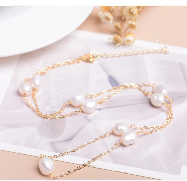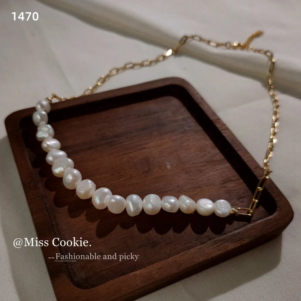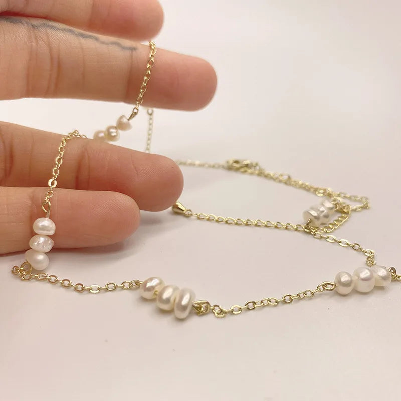 Pérolas naturais de água doce, pérolas em contas feitas de colar de joias de alta qualidade, acessórios em aço inoxidável 316.