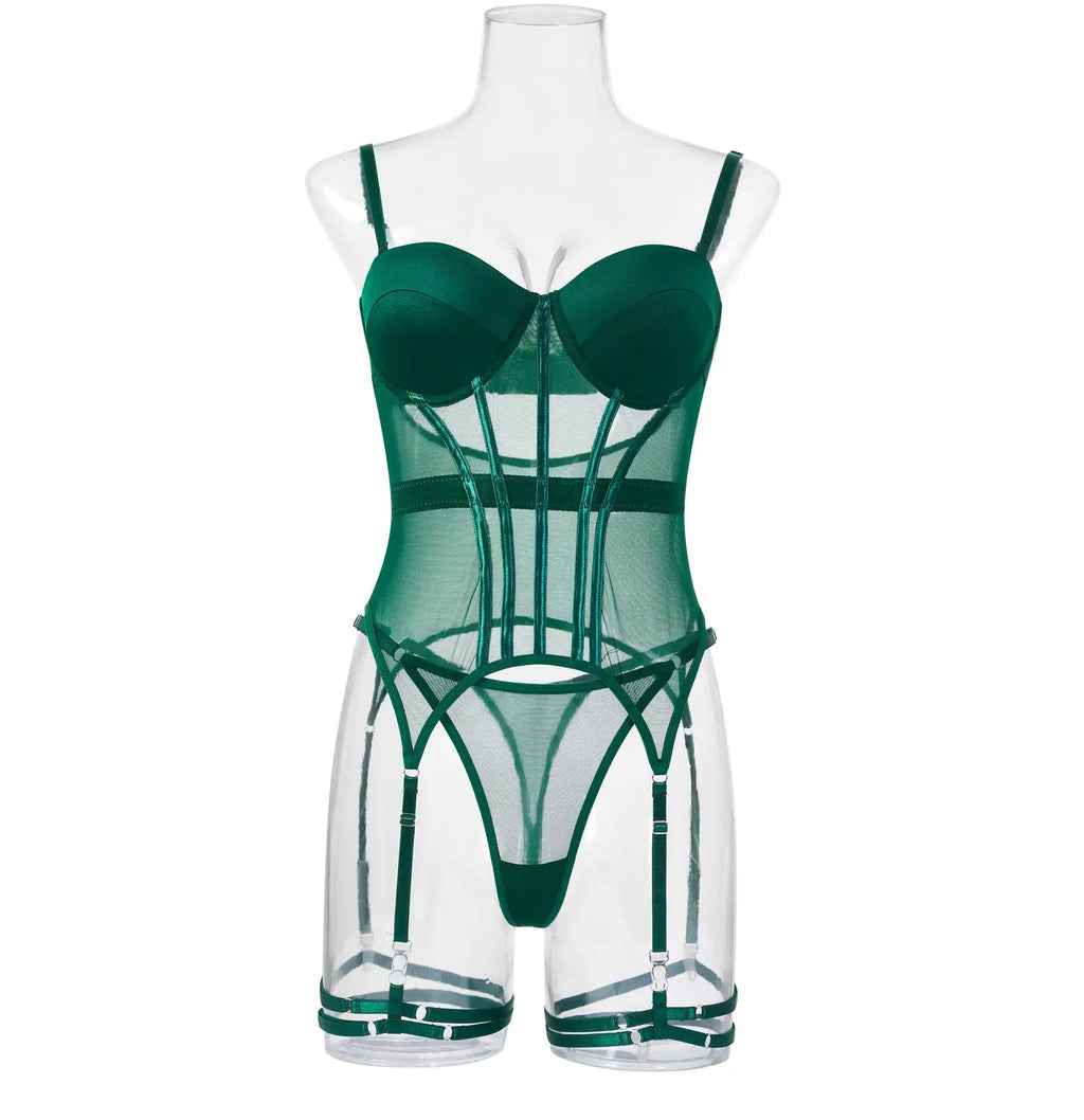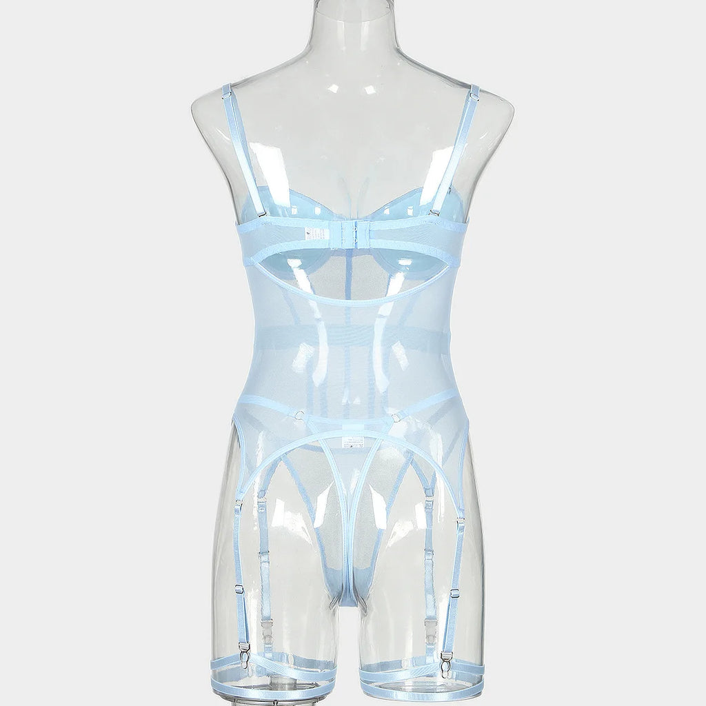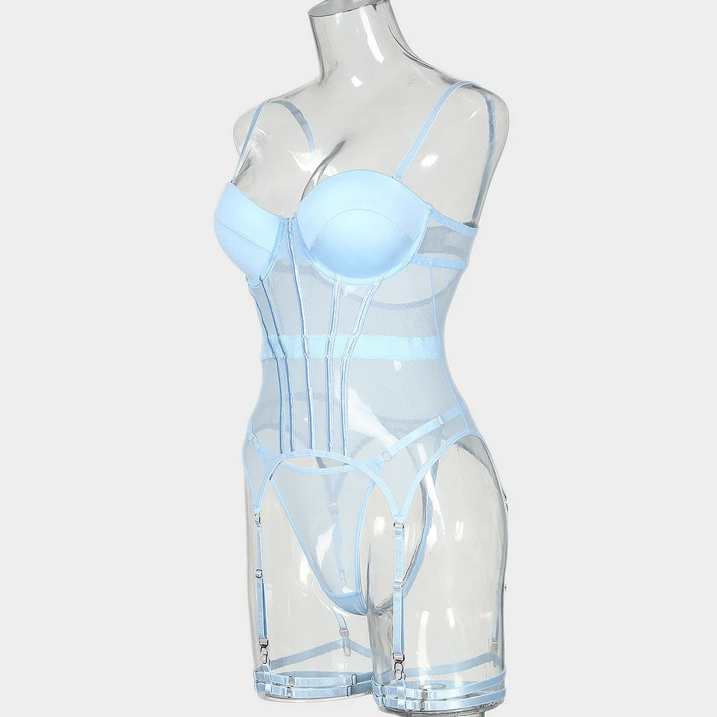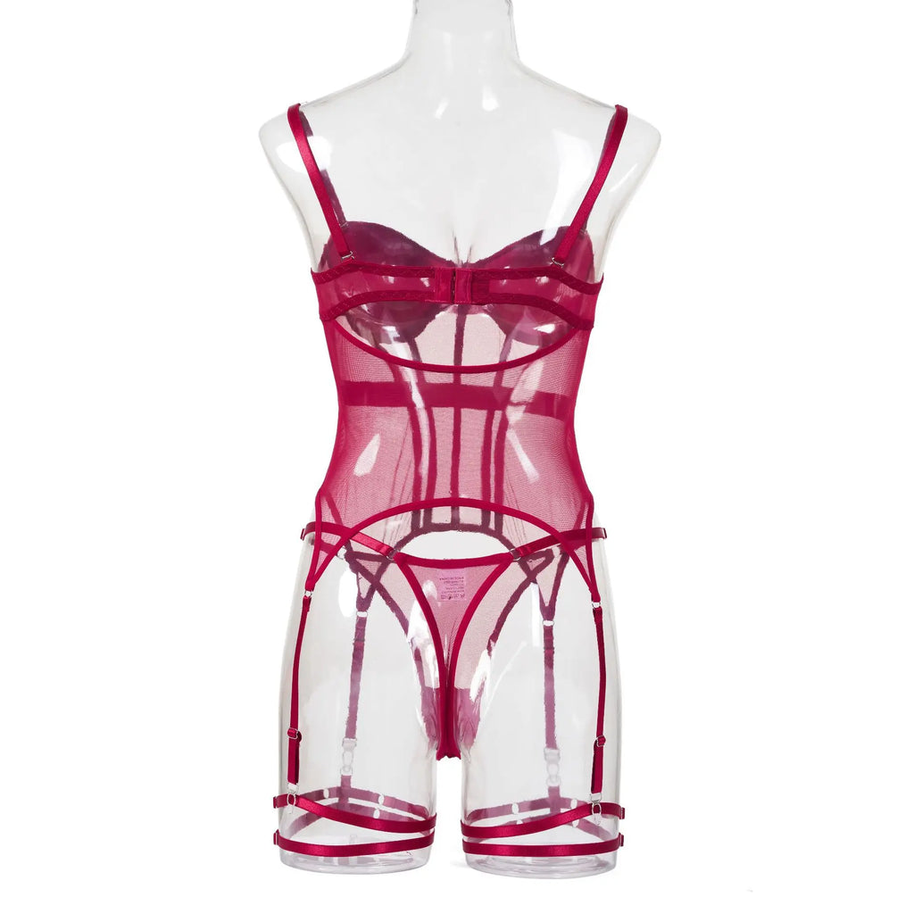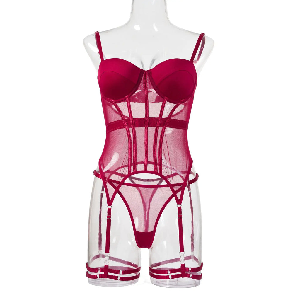 Conjunto de Lingerie de Malha de Luxo para Mulheres, Body Sem Costas, Conjunto de 3 Peças com Cinta-Liga, Vestidos Sensuais para Mulheres