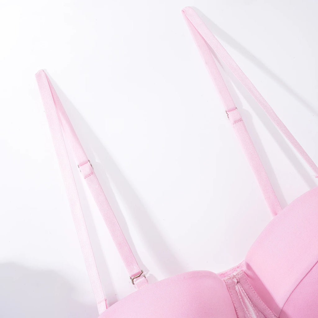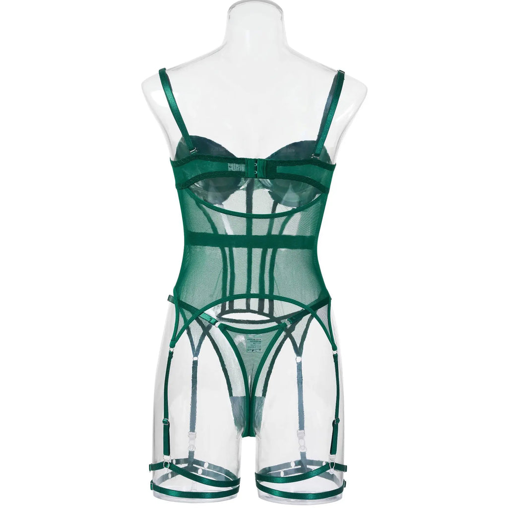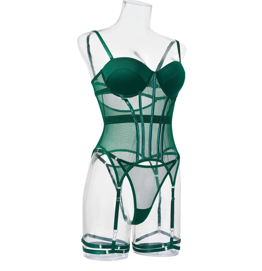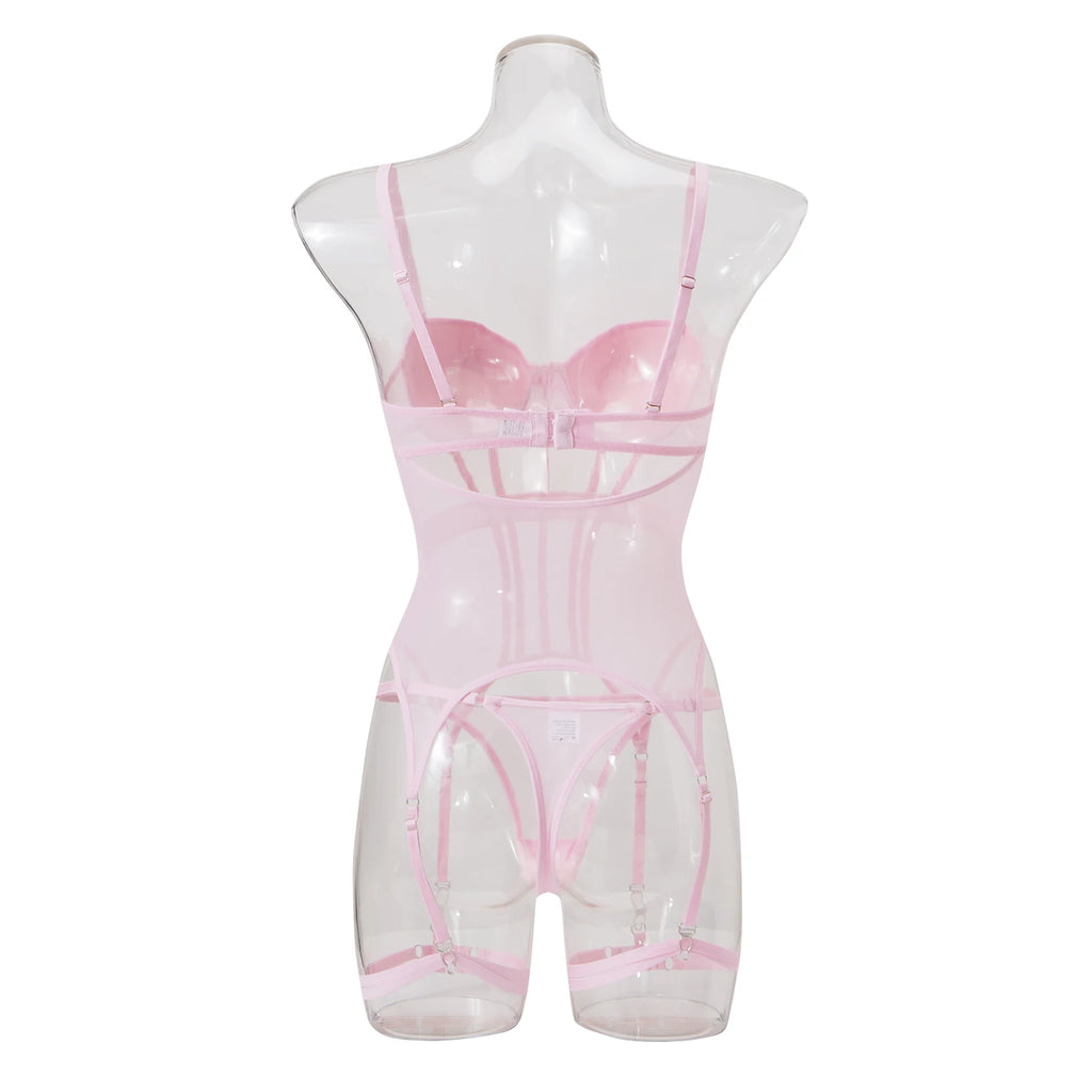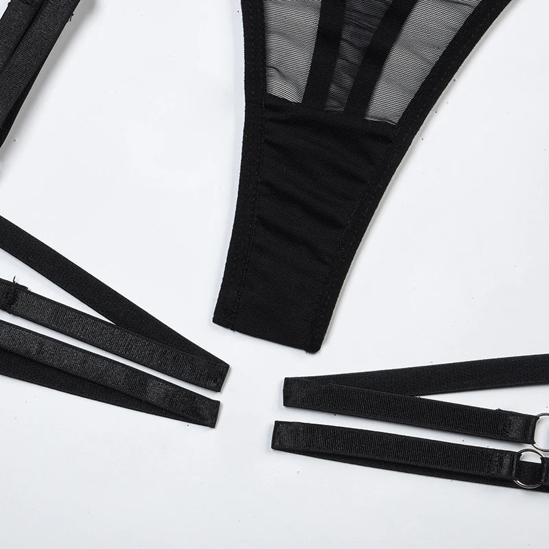 Conjunto de Lingerie de Malha de Luxo para Mulheres, Body Sem Costas, Conjunto de 3 Peças com Cinta-Liga, Vestidos Sensuais para Mulheres