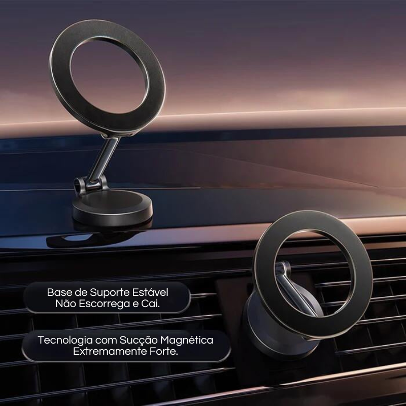 O UltraMagnetic Support® - Utiliza a tecnologia de força Ultra Magnética que gera uma pressão de atração com intensidade extremamente forte. Seu material é todo em liga de zinco, que é mais durável, mantém seu telefone ou tablet, firmes e no lugar para uma direção mais segura. Sem risco de quedas.