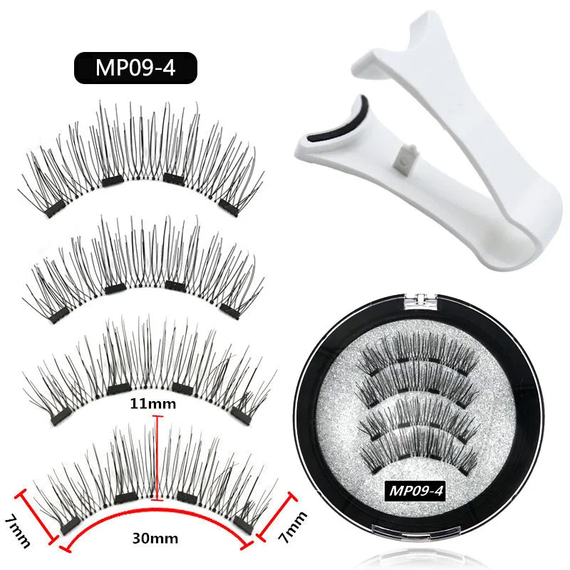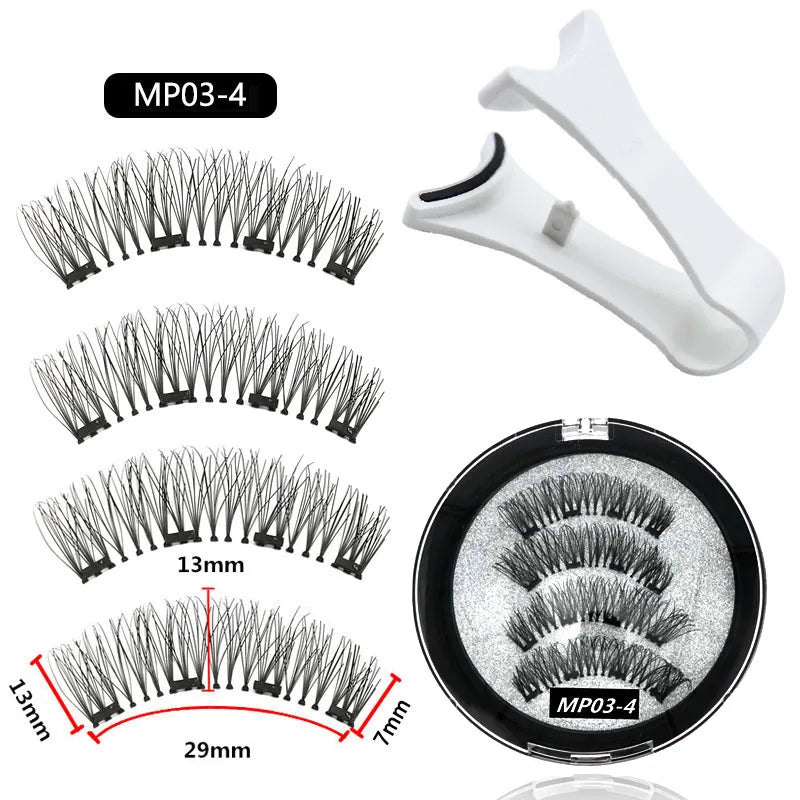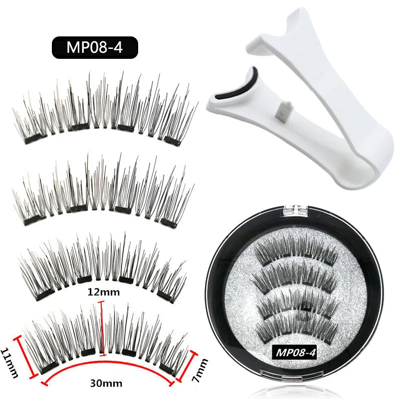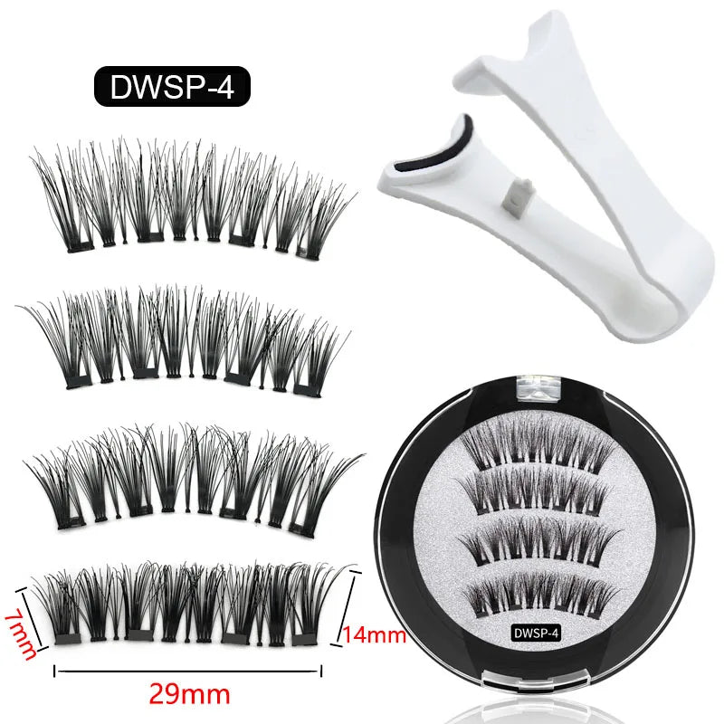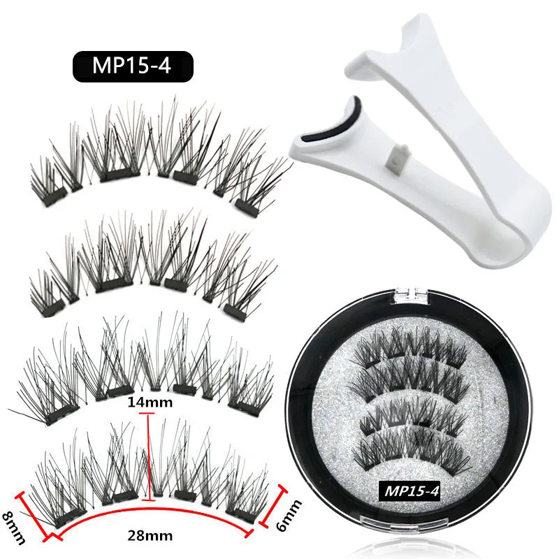 4 Cílios Magnéticos feitos à mão 3D naturais, cílios postiços magnéticos 4 unidades reutilizáveis, conjunto de pinças e ferramentas de maquiagem