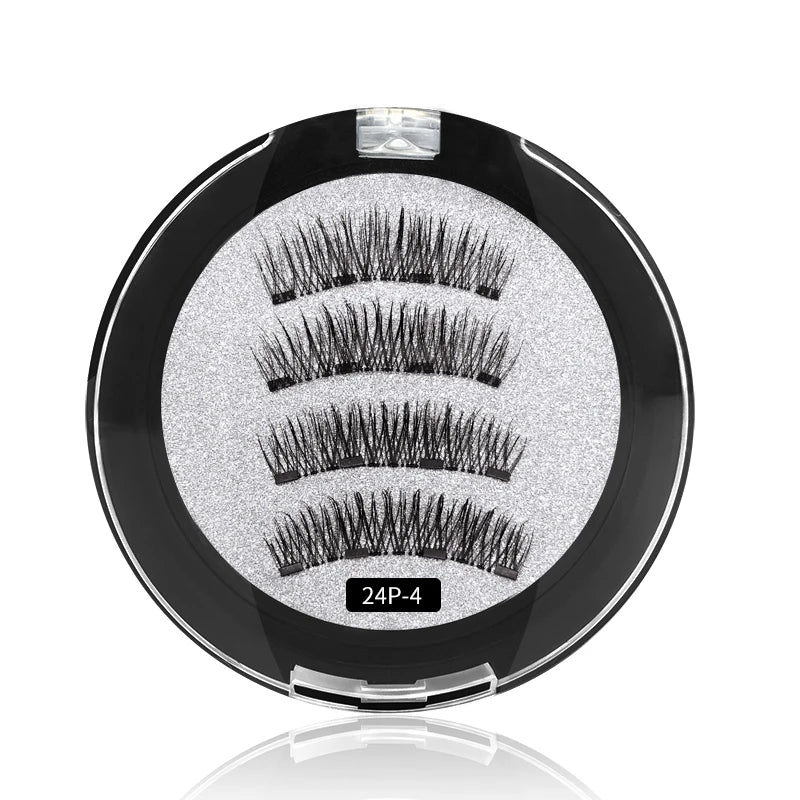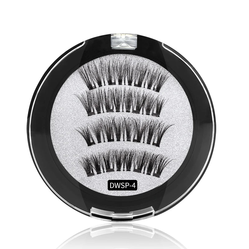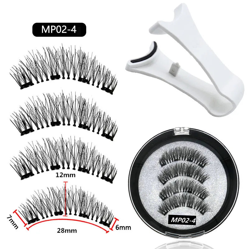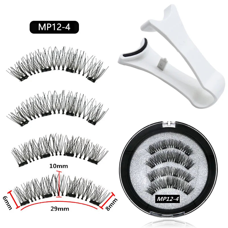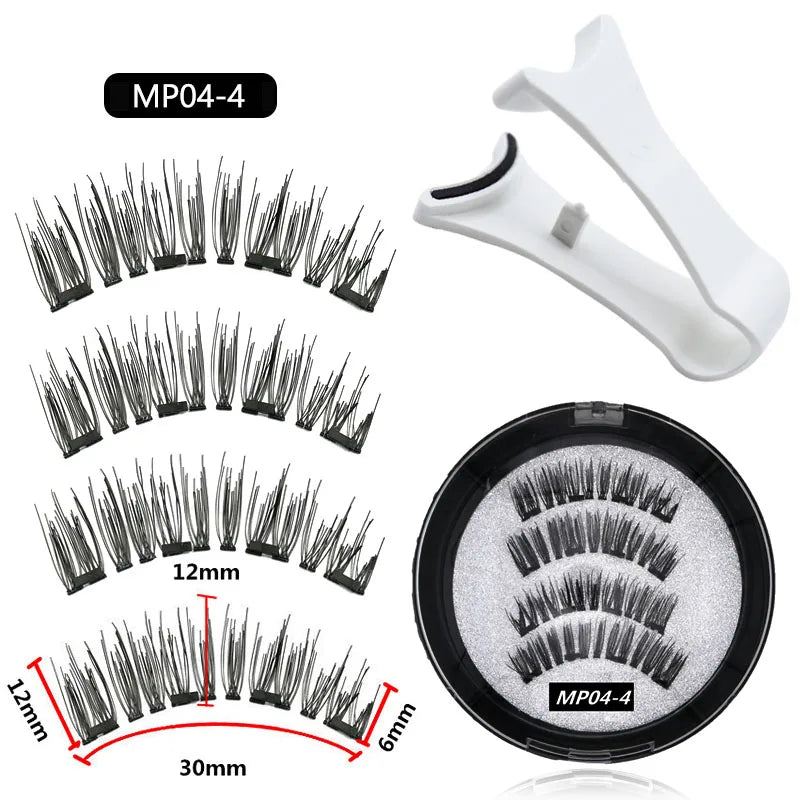 4 Cílios Magnéticos feitos à mão 3D naturais, cílios postiços magnéticos 4 unidades reutilizáveis, conjunto de pinças e ferramentas de maquiagem