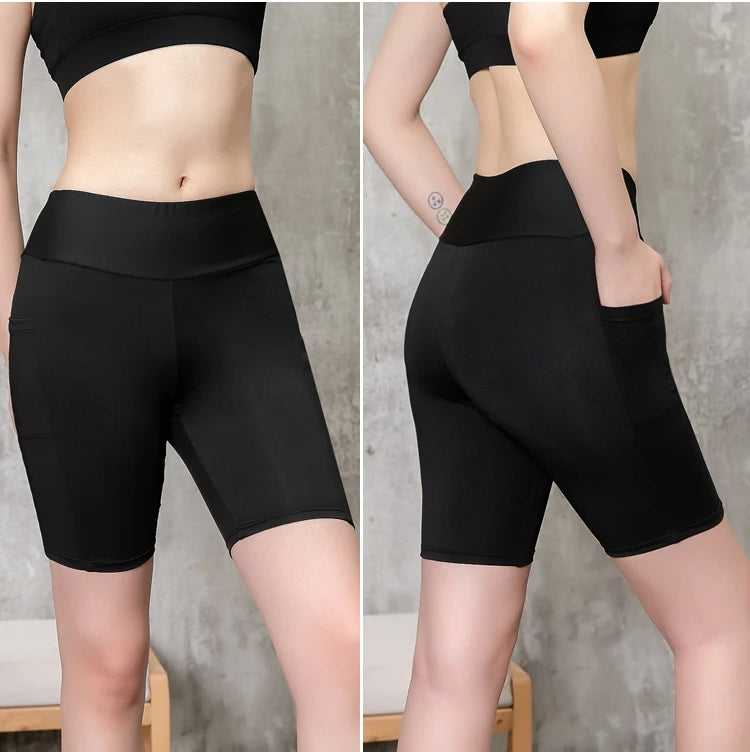 Shorts Feminino Esportivas Base Alta Elasticidade Tamanho Plus Calças de Fitness